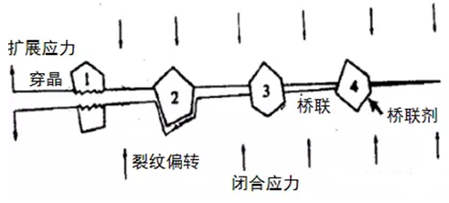 圖6 裂紋偏轉(zhuǎn)和僑聯(lián)示意圖